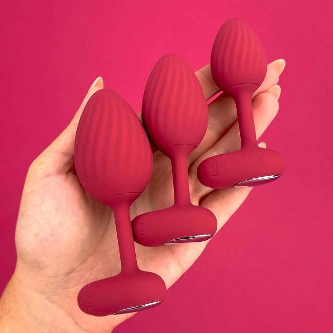 Lassen Sie dieses sexy Analtrainingsset mit 3 vibrierenden Buttplugs in abgestufter Größe Ihren Hintern mit 10 ekstatischen Vibrationsmodi aufheizen, während Sie sie diskret tragen, wohin Sie auch gehen.