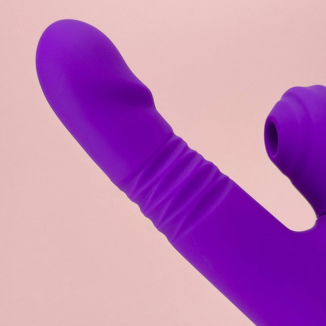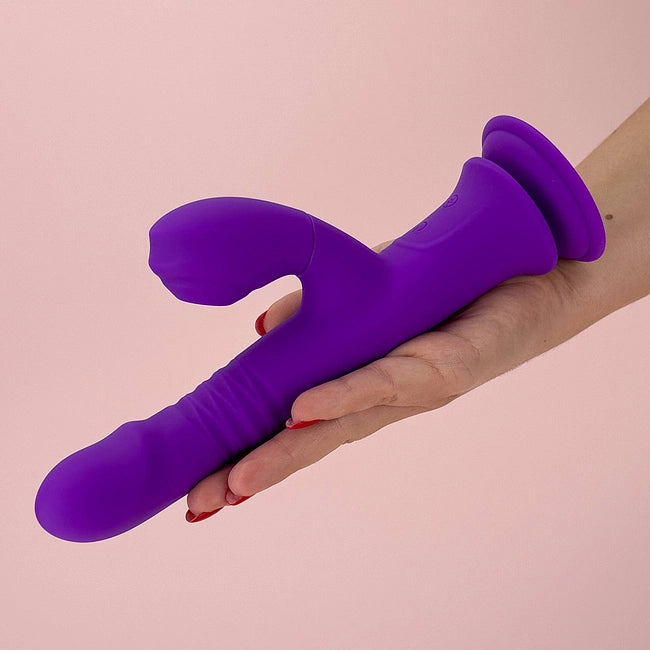 Eine Fantasie, die endlich wahr geworden ist – lernen Sie einen wunderschönen reitbaren Rabbit-Vibrator mit einem stoßenden und rotierenden Schaft und einem Klitoris-Sauger-Aufsatz kennen, alles auf einem sicheren Saugnapf angebracht – es ist ein Rabbit, auf dem Sie reiten können!