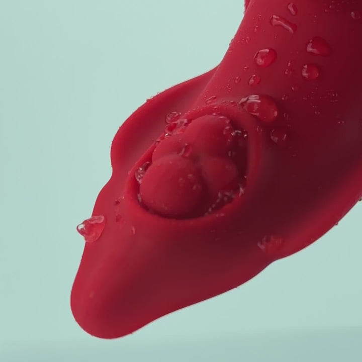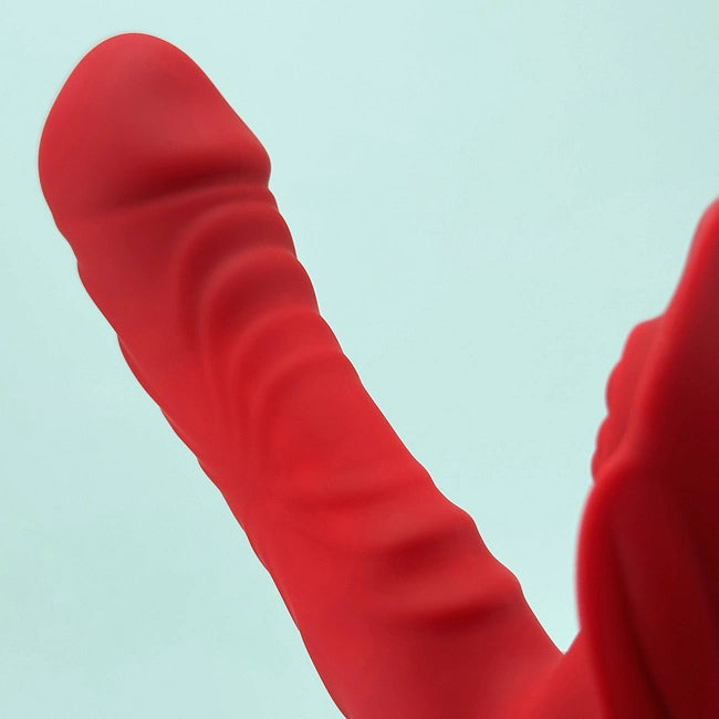 This alien-shaped shaft wearable thrusting vibrator fits nicely in your panties, and tantalizes your core with 9 alluring vibration modes and thrusting modes that you control via an app - or your parnter does, discreetly..