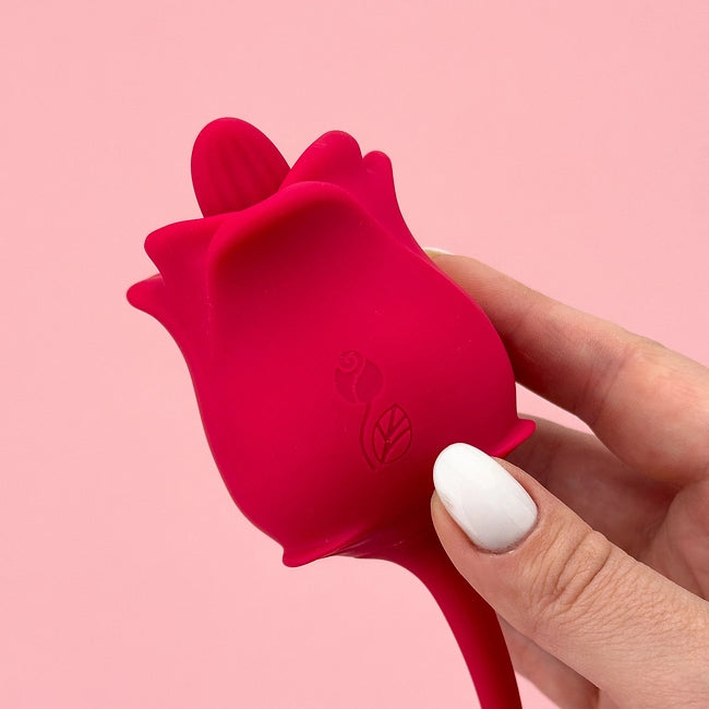 Dual Bloom rose vibrator is a dual-sided vibrator that thrills with 10 licking modes on the rose side and 10 thrusting and 10 vibration functions on the shaft. Its soft, flexible silicone cord bends to your wish for many stimulation combinations.
