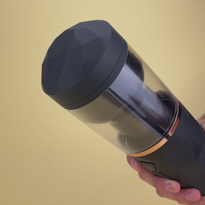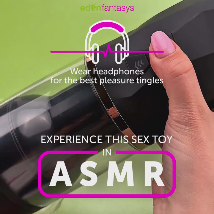 Stroke your ego with the Ego X hands-free masturbator - a rechargeable stroker with 7-mode lifelike thrusting, realistic, textured, very welcoming pleasure tunnel and erotic moans for an "explosive" solo session.