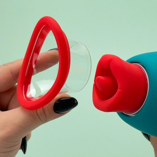 Euphoria licking pussy pump features 10 vibration modes on the licking tongue, 10 kissing patterns on the lips, and 3 suction speeds for an oral experience like no other. You or your partner can control via the app.