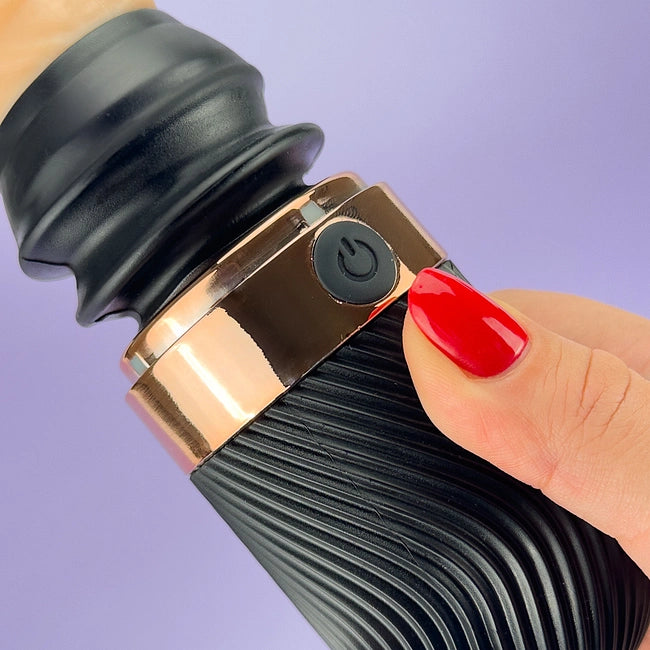 The Fantasy Thruster thrusting vibrator delivers deep G-spot pleasure with 7 vibration patterns, 7 thrusting speeds, and a warming shaft that heats to 107°F. Hidden in a discreet, travel-friendly case.