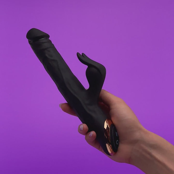 Playtime never felt so exciting as with this mind-blowing rabbit vibrator, featuring 10 thrusting modes, making your G-spot and clit erupt with pleasure.
