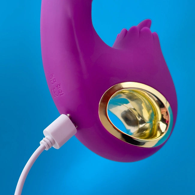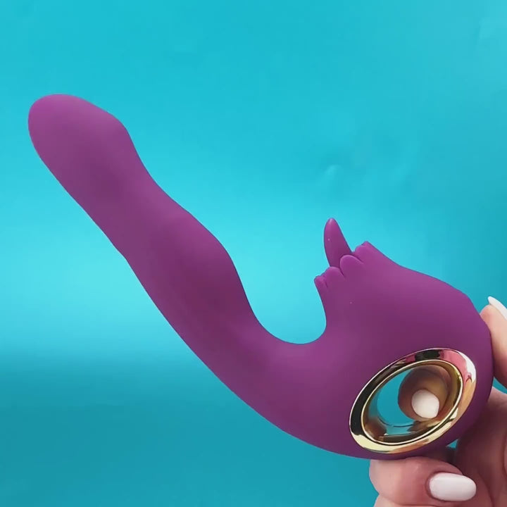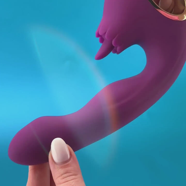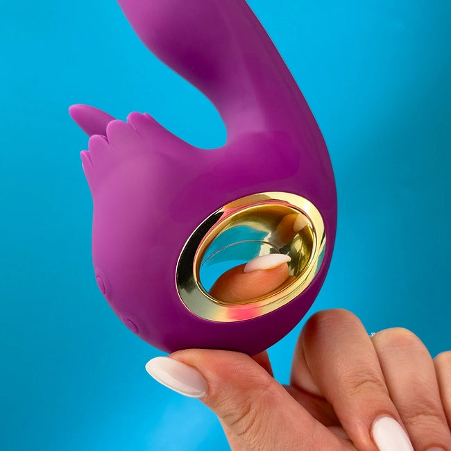 The Love Song rabbit vibrator massages your G-spot with 10 rotating and vibration modes on the shaft, while the small tongue teases the clit with 10 licking modes.