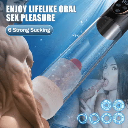 • Features: Erection, Enlargement and Masturbation 3 IN 1, 3 Training, 6 Strong Sucking, Full Waterproof, LCD, Silicone Pocket Pussy, Lifelike Oral Sex