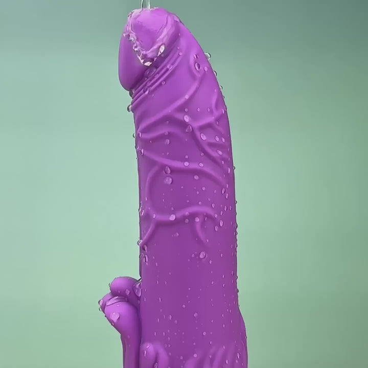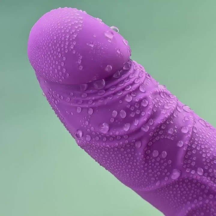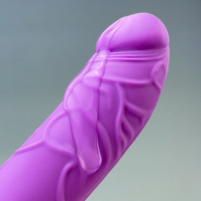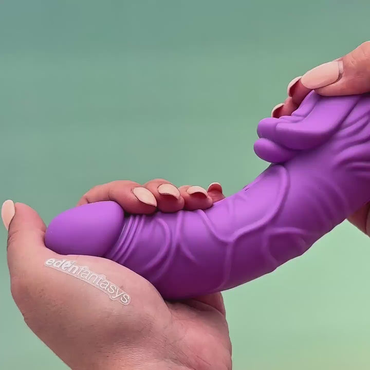 Thick and veiny, the Orgasm Enforcer dildo vibrator delivers 7 intense vibration modes through a girthy, realistic shaft and a firm curved head for deep G-spot pressure. It even has a clit-tickling base for blended orgasms - if you push it deep enough.