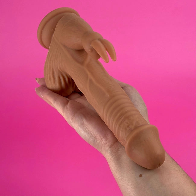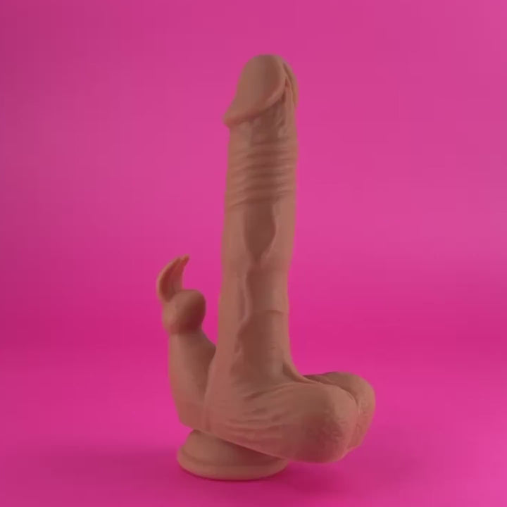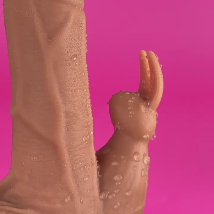 Indulge with this rabbit vibrator with a suction cup, designed to deliver intense pleasure somewhere on the brink of reality and fantasy, enhanced with 9-mode thrusting and rotating patterns and a heating feature.