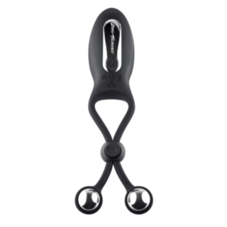 Introducing a unique ring design that’s super comfortable and fiercely titillating. Adjustable silicone straps tie around you like a drawstring and finish with two stainless-steel balls that dangle and massage as they move. The chunky centerpiece features a powerful tapping motor that stimulates in 10 glorious speeds wherever you place it - and the 1-button control is nestled into a stylish chrome-finished plate. Enjoy your long-lasting pleasure underwater as it’s completely submersible, easy to clean, and recharges via USB.